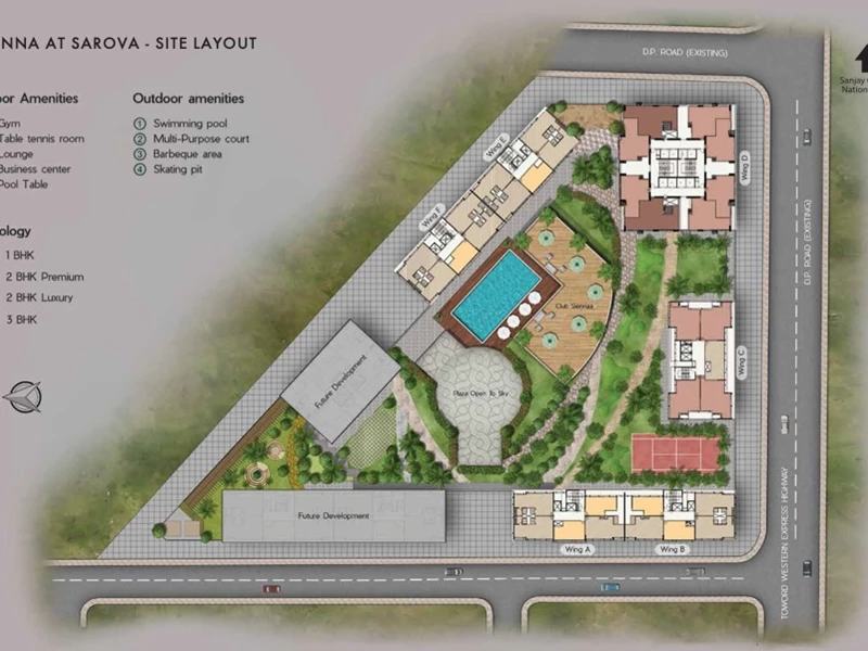 Siennaa is a part of the massive Sarova township in Kandivali East, designed as a self-sustained residential ecosystem. Offering 2 and 3 BHK apartments, Siennaa comes with lifestyle amenities including landscaped gardens, sports zones, clubhouse, and entertainment spaces. Being part of Sarova, it benefits from integrated infrastructure like retail, healthcare, and schools within the township itself. Its location near Western Express Highway and the metro line ensures excellent connectivity across the city.